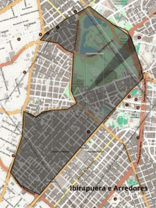 No entorno do Bairro do Parque Ibirapuera, pelos lados da Avenida República do Líbano, temos a badalada Vila Nova Conceição e seus edifícios luxuosíssimos, que desembocam no pacato Jardim Paulista; vindo pela Avenida Quarto Centenário, está o exclusivo Jardim Lusitânia, com suas casas vizinhas de muro com o Parque. Basta atravessar a Rua Afonso Brás para alcançar Moema, o bairro das ruas com nomes de pássaros; e passando a Avenida Ibirapuera em direção à Avenida Indianópolis, cruzar as ruas com nomes de tribos e árvores indígenas.